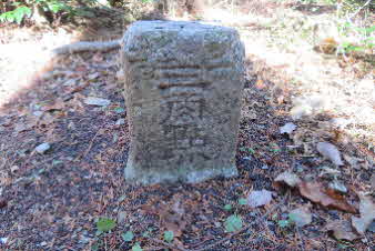 登山道を登りきると、右奥に山頂が見える。山頂に到着、ほっと一息といったところのようだ。清水山は、標高242mで三等三角点になっている。山頂脇に、小さなお地蔵さんが迎えてくれた。