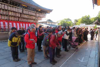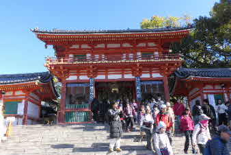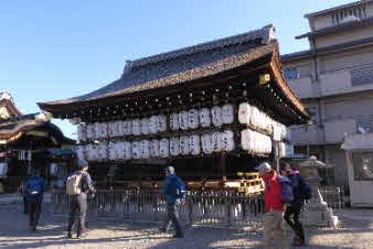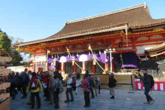 公園から少し下ると、八坂神社になる。お参りの人で一杯だ。我々も、登山の無事を祈ってお参りした。今年もいい年でありますように。