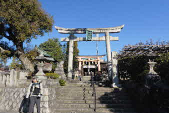 小ピークを登り終え、下りが始まる。国道1号線に出て、小さな歩行者用トンネルを抜けると清水山への登りになり、息切れしそうな石段を登る。