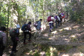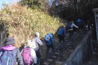 少し一般道を進むと、清水山への登り口がある。ここから山頂ま急な登りが続く。約30分頑張って登っていく。