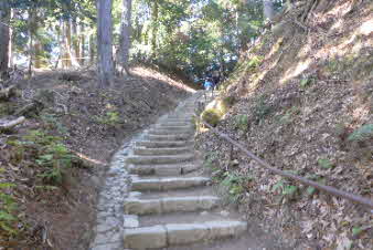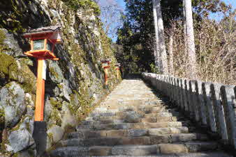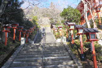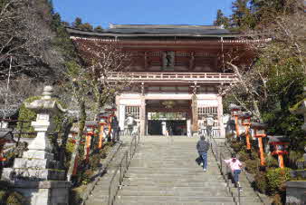 由岐神社から九十九折参道を上がっていく。義経公供養塔などがあり、中門になる。ここから本堂まで石段が続いている。