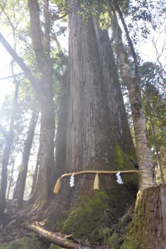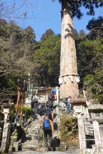 石段の途中に、大きな大きな「大杉」が何かパワーをくれるような気がする。「大杉さん」とよばれ、一心に願えば、願いがかなうそうだ。大杉は、樹齢800年、樹高約53mだそうだ。