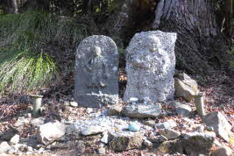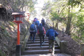 石を積んだようなところがあるが、「御船形石」で「きぶねがたいし」と呼ばれるそうだ。玉依姫命が乗ってきた「黄船」を石で覆い隠したと言われている。新しいことへの挑戦、人生の門出を願うとき、この前で祈ると、荒波を乗り越えられるということです。