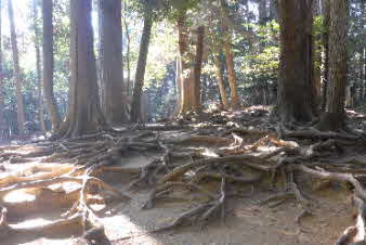 やがて峠のようなところに差し掛かり、左手に木の根っこが広がっているところになる。木の根道と言われている。