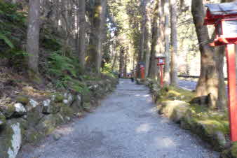 奥の院参道へと入っていく。霊宝殿などがあり、息つぎの水が・・・今日は枯れていた。牛若丸が天狗に兵法を習うため、深夜ここで途中の息継ぎのためここで水を飲んだそうだ。