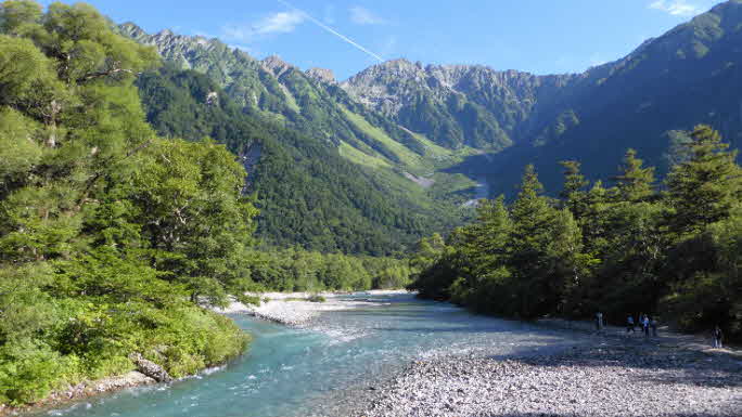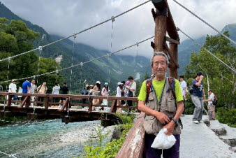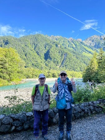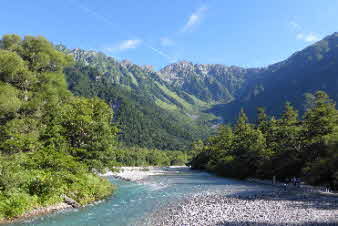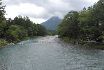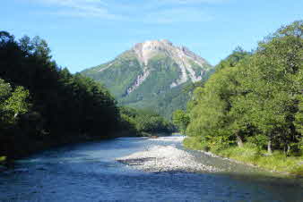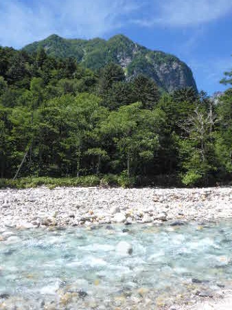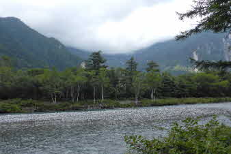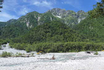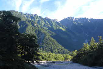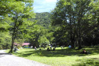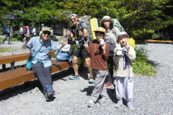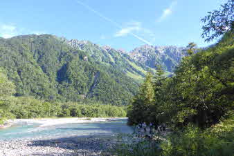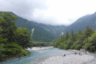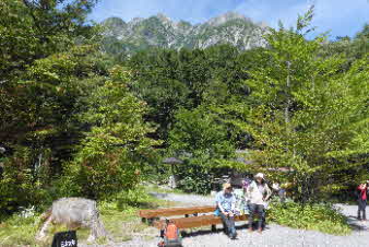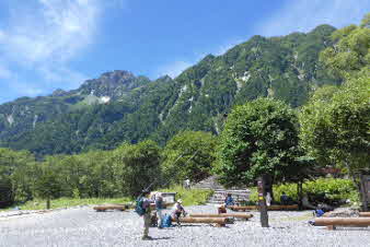 明神から1時間あまりで徳沢に到着、昨日知り合った家族がここでキャンプ中。一緒に上高地、徳澤の景観に酔いしれていた。徳沢園のおいしいアイスクリームを頂いてほっとしたひと時だった。 |
