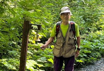 梓川沿いに遊歩道をどんどん遡っていく。所々に熊鈴が備え付けられている。「ガランガラン」と鳴らして先へと進んでいく。 |