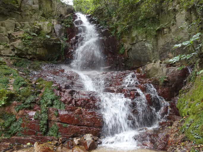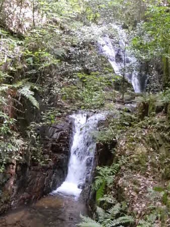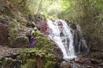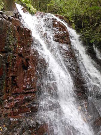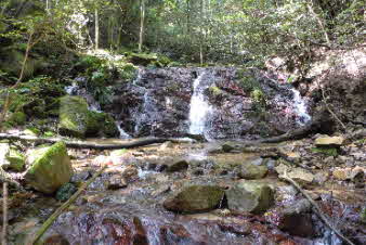 F1滝から5分ほどで第2、第3滝に到着。やっと清々しい滝を眺めてやっと気持ちが落ち着いてきた。登ってきてよかったが、これから先も少し心配で落ち着かない。 |
