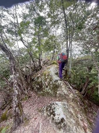 続いてマンモスの背と言われる、長い大きな岩が待っている。ロープが張られているので確保しながら慎重に下る。