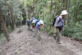 9月13日、友歩会で、明神山に行った。友歩会で2011年3月に初めて登ったが、低山ながら大変興味のある山だった。その時は、Bコースの谷筋を登り、Aコースの尾根を下った。今回は、Cコースの尾根を登り、Aコースの尾根を下山する計画だ。
