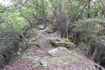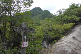 合掌岩の上で昼食にしようと思っていたが、座り込んでゆっくりできるような場所ではない。少し先に進んで昼食にした。 |