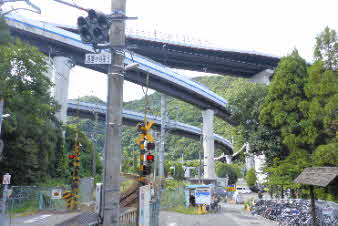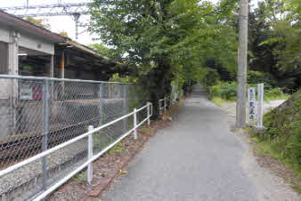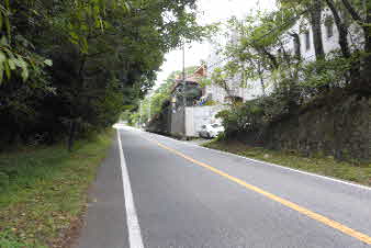 下りつくと、有馬街道にでる。少し旧道を行くと神鉄の下をくぐるトンネルがある。その先少し広場があって、有馬街道の車道になる。気を付けながら坂道を喘ぎながら登っていく。 |