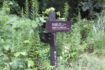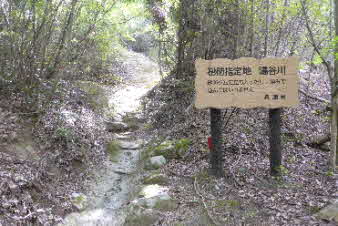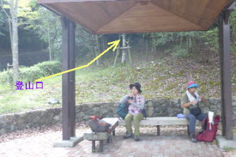 有野台団地を通り、少し外れの湯谷川公園に着く。この近くに登山口があったのだが、分からず10分ほどうろついて、たどりついたのが公園の休憩していたベンチの先だった。 |