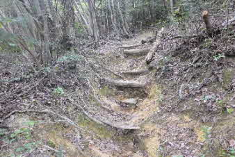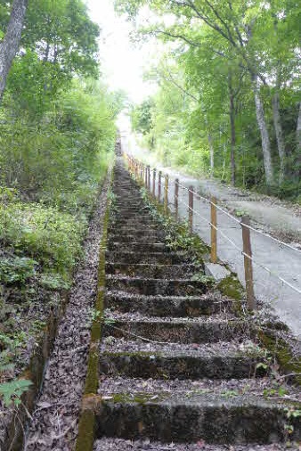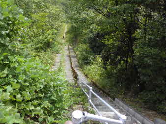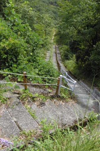 長い階段で思い出したのが、須磨アルプスの栂尾山の階段だ。高倉台の団地から急な階段が栂尾山山頂近くまで、348段の階段があった。どちらも開発でできた階段だ。 |