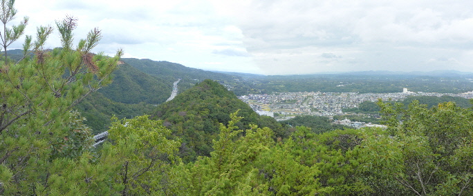尾根に出て数分登ると、展望岩に到着する。ここは高丸山の素晴らしいポイントのひとつだ。有野台方向の大パノラマが楽しめる。 |