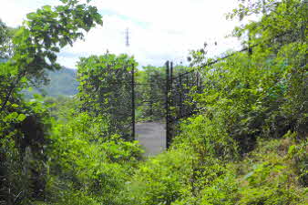 送電線鉄塔が見えてきてその下を進むと、また分岐になっている。「有馬温泉駅(大階段経由)1.7km」の道標があり、そちらへと進んだ。 |
