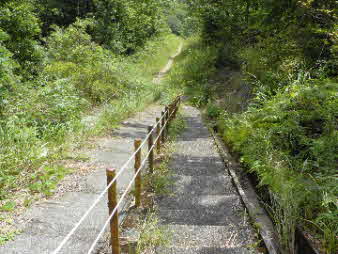 上から見ると、スキーのジャンプ台のようなイメージだ。行く前に心配していたのは、手すりがないので転倒でもしたらどえらいことになると思っていた。しかし固定の手すりではないがロープの手すりが付いていたので一安心だ。 |