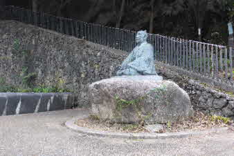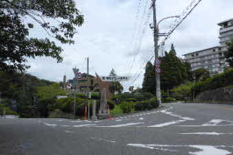 坂を登り切ると、交差点先は、有馬グランドホテルだ。左下へと下っていくと、神鉄の有馬温泉駅になる。大公秀吉像を右に見て坂を登っていくと、有馬温泉金の湯に到着だ。