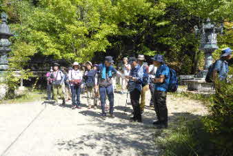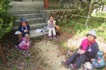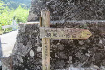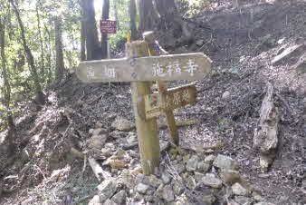 追分から最後の登りが待っている。頑張って登っていく。苔むした石垣が出てきてこの辺りからお寺の遺構があったのだろうか。追分から30分ほどで槇尾山施福寺に到着した。 |