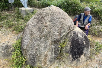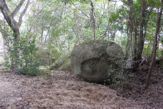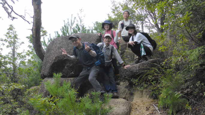 観音山へ 途中の大きな岩 |