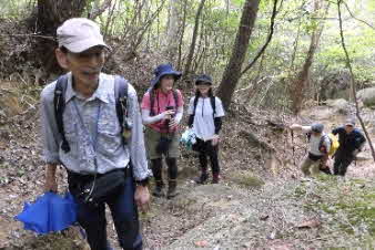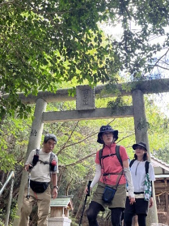 山頂から約45分で、若宮神社に全員無事下山した。途中、トリッキーな場面もあったが事故がなくてよかった。 |