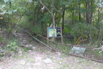 水車谷BSから少し車道を登ると、柿谷コースの登山口に着く。支度をして出発、いきなり急登が始まる。出足でカツを入れられる感じだ。 |