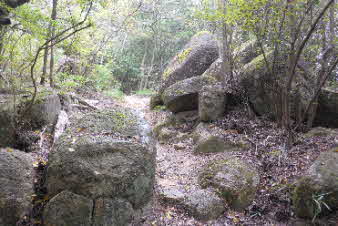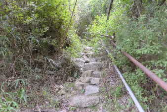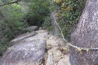 鷲林寺へ 急な岩の道の下り |