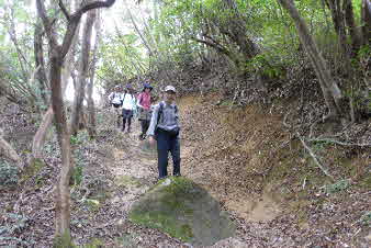 観音山へ 奇岩をあとに |