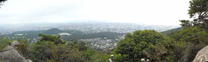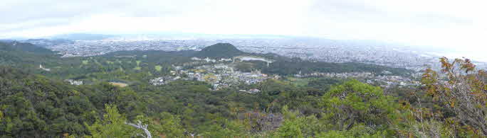甲山を中心に、かなり遠くまで見える。今日は曇っていたが、晴れていたらもっと素晴らしいだろう。 |