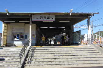 的形駅に降り立つと、的形の見どころと里山登山案内板があり、そのパンフレットもおいてある。地域活性に進められているようだ。早速、頂いたパンフレットを見ながら出発した。 |