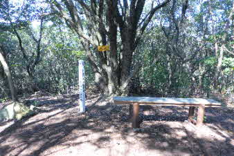 | 坂の山をあとに次の大日山に向かう。少し下ると、栄谷山の分岐があり、登ってみた。少し登ると山頂だ。栄谷山は、標高94mで大きな木が頂上にあり、海の方の展望がある。山頂を後に下ると、当初予定の道に出る。そして登り切ると、大日山だ。 |