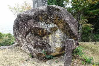 | 岩戸山は、標高320mで、山頂は大きな岩で占められている。一番大きな岩には矢印が刻まれている。矢印は、野洲の旗振り山を指しているそうだ。 |