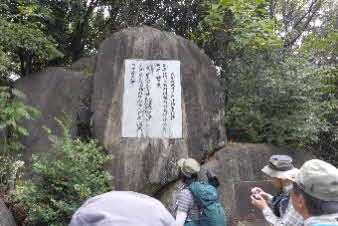 阿賀神社にお参りして、左奥へ進むと、「万葉歌碑・十三仏」の道標がある。ここから少し急な坂道を登ると、万葉歌碑に着く。