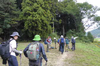 万葉歌碑を見て、船岡山へは登らず、裾野を巻いて岩戸山へと向かう。その先、田んぼの中の道を進み、十三仏登山口へと進める。