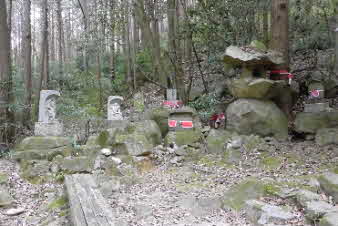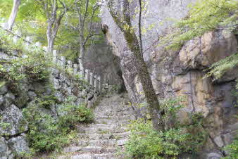 登山口からしばらく竹藪の道を進むと、「新四国八十八箇所霊場」の碑があり、十三仏へと登っていく。結構、急な石段の道が延々と続く感じで、道の両側に、霊場の石仏が続いている。