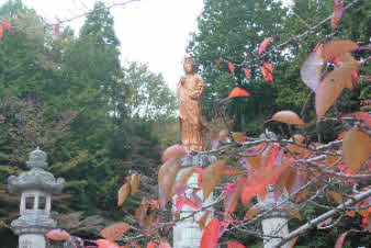 瓦屋禅寺へと進めた。一旦下り、登り返し分岐からさらに下ると、瓦屋禅寺の金色に輝く、慈母観音の広場に出る。