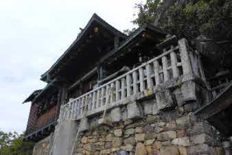 十三仏と名所化しているのだが、十三仏はどこにも見当たらない。お堂の後ろに絶壁にあって、お堂で隠してあるようだ。ちなみに、聖徳太子が巨岩に爪で描いたと伝えられている。