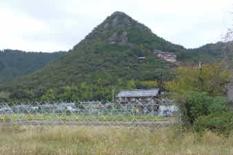 | 太郎坊宮参道を太郎坊前駅まで下っていく。途中、何度振り返って見ても太郎坊山は美しい。心に残る太郎坊宮と太郎坊山だ。 |