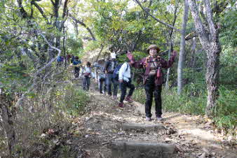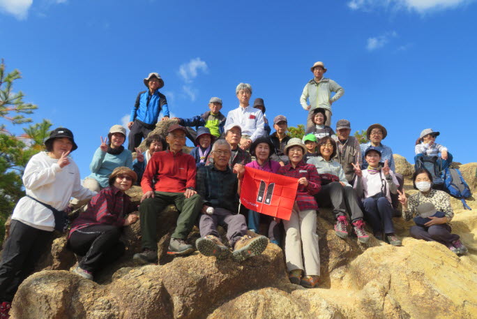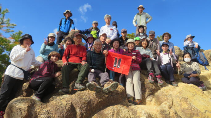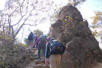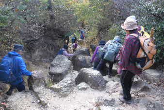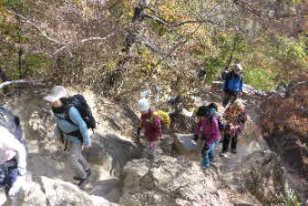 今日は、秋晴れの良い天気で紅葉を楽しみながら、ロックガーデンの岩場を楽しみ、風吹岩で絶景を満喫した。猪には会わなかったが大きな親子蛙(蛙岩)に出くわし大変面白かった。
