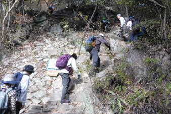ロックガーデンから六甲最高峰を越えて、有馬温泉まで、よく行っていたが、メンバーは歳を重ね風吹岩で目いっぱいになってきたようだ。でも参加者の皆さん若いころを思い出して大賑わいだった。