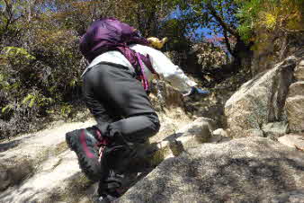ロックガーデンの岩場を楽しみながら登っていく。子供になった気分で、クライマーになった気分でと、楽しく面白い。