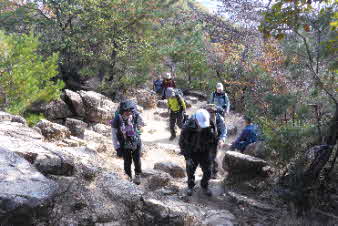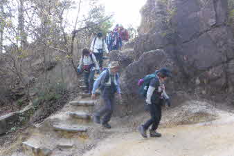 風吹岩でゆっくりしたあと、次の蛙岩へと、下り始めた。こちらの道も、ロックガーデンに似て結構トリッキーな下りだ。