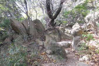 10分ほど下ると、金鳥山の分岐を通過する。この分岐から保久良神社へよく下った。そして二つほど分岐を通り過ごすと、蛙岩に到着した。