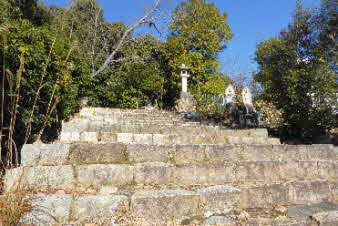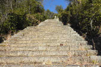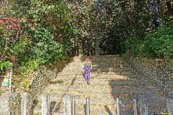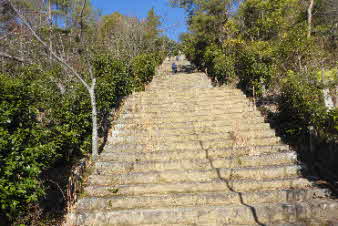 感謝道、感謝坂は天まで続くような石段が続いている。一歩一歩ゆっくり上っていく、試練の石段のようだ。 |