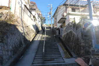釣鐘山へ 住宅街の長い階段 |