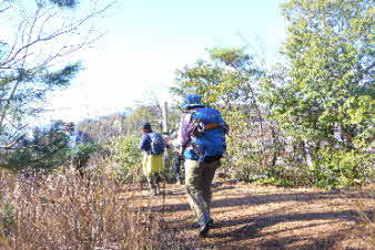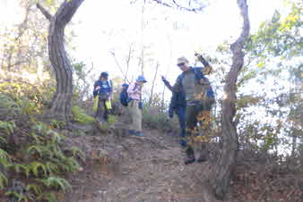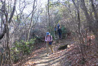 ロックガーデンの下りも楽しみ予定だったが、それもやめ 少し尾根を先に進み、山本駅に通じる、下り道を下山した。道はあまり踏まれていないようで、落葉の下に小石があり、注意しながら下った。