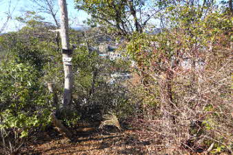 ほんの少し登ると石切山山頂に着く。石切山は、標高284mで、三等三角点になっている。山頂からは神戸方面の市街地が展望できる。 |