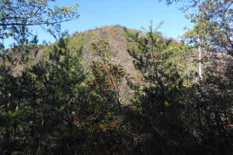 釣鐘山をあとに少し下ると、木々の間にこれから登る石切山が見える。鞍部まで下り、登り返していく。