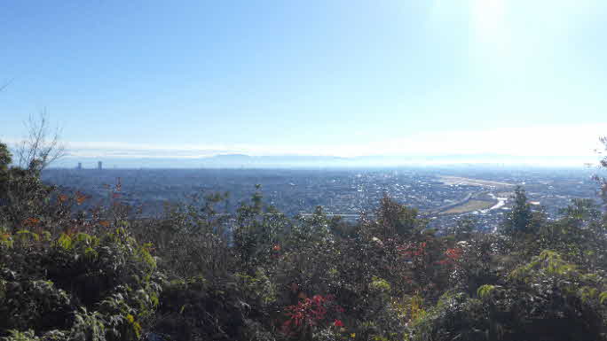 ここからの展望は素晴らしい。生駒金剛山系、手前に大阪市街が広がり、手前には伊丹空港が見える。