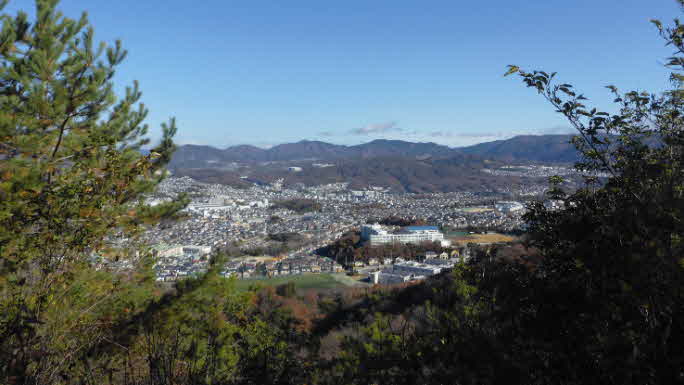 | 石段を登り終えると、ほどなく釣鐘山の山頂に着く。釣鐘山は、標高205mで甲山方面の展望ができる。小春日和の山頂はなかなか素晴らしい。 |